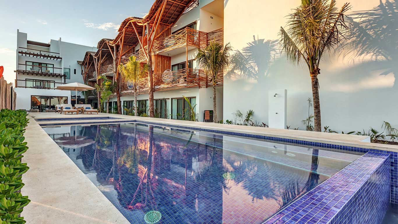 The Mystique Blue Holbox beachfront resort is designed to embrace natural light as a natural ambiance. The functional distribution of the hotel corresponds to the best use of the land, considering that the largest number of rooms will be directly or indirectly overlooking the sea. Its design is inspired by the 5 most important concepts of the area: vegetation, sea movement, regional wood, Mexican architecture, and organic elements. Miles From Ordinary.
